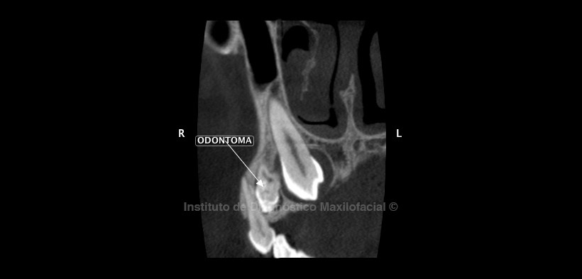 El odontoma es el tumor odontogénico más común, es considerado un hamartoma, lo que se define como una malformación,  la cual presenta un ritmo de crecimiento similar a su tejido de origen. Usualmente se presentan como un hallazgo radiográfico, desarrollándose principalmente en la segunda década de la vida. Pueden presentarse de dos formas; el odontoma compuesto, se presenta  como múltiples dentículos, delimitados por un halo radiolúcido, corticalizado; y el odontoma complejo como una masa irregular de densidad dentaria, la cual se caracteriza por la formación aberrante de esmalte, dentina, pulpa y cemento.