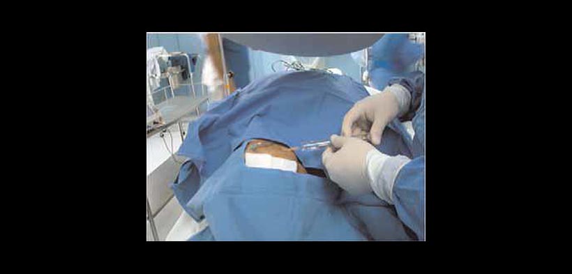 Fig. 1. Rizotomía percutánea con radiofrecuencia. Colocación del paciente en decúbito ventral con hiperextensión.
