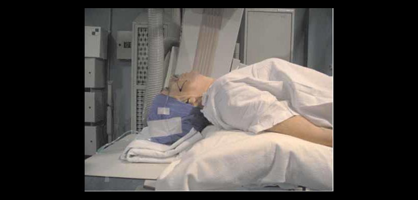 Fig. 1. Rizotomía percutánea con radiofrecuencia. Colocación del paciente en decúbito ventral con hiperextensión.