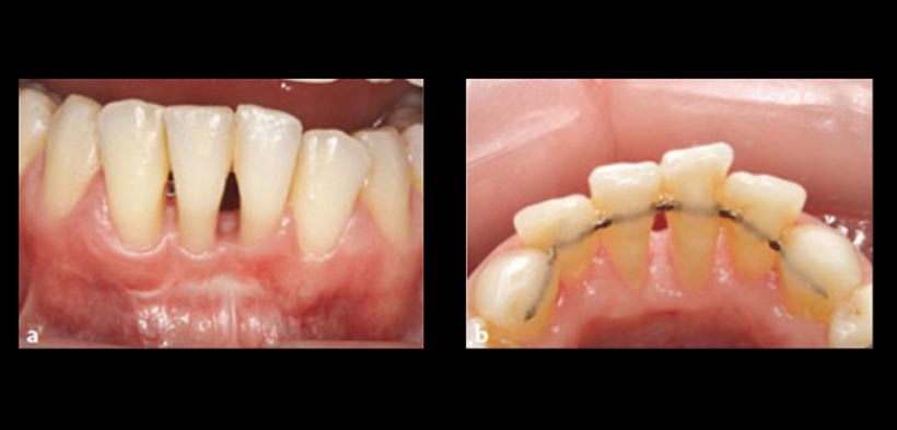 Fig. 2. Fotografías que pertenecen al paciente anterior. (A) vista vestibular (B) vista lingual. 2 años post tratamiento, muestra una encía saludable.