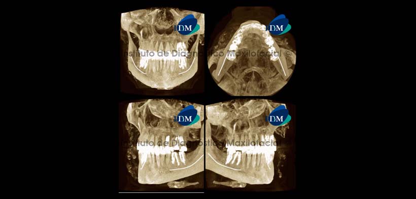 Así mismo, el software Romexis nos brinda diferentes opciones de reconstrucción 3D, como por ejemplo la opción para evaluar los tejidos blandos en la cual observamos las calcificaciones con un aspecto más difuso y confirmamos su disposición cefálico-caudal antes descrita (Fig. 3 y 4).