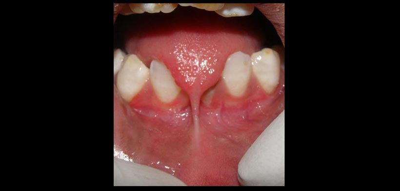 - Una variante muy rara es la anquiloglosia en el cual existe fusión del frenillo lingual con el frenillo labial mandibular, esta entidad se ha reportado en un niño asociado con oligodoncia de la dentición molar temporal. En el presente caso, anquiloglosia se asoció con anodoncia parcial del sector de los dientes permanentes del sector antero inferior.