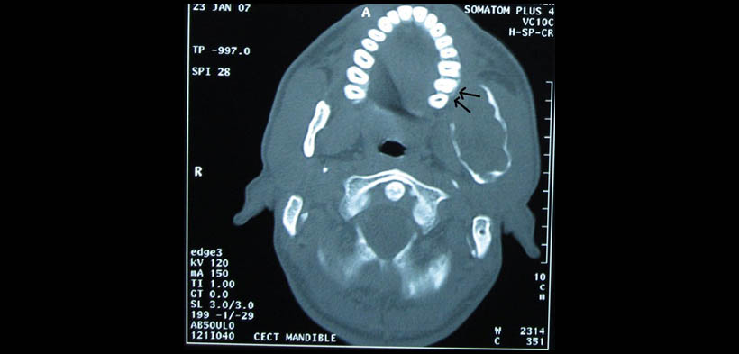 1. Arora KS, Binjoo N, Modgil R, Negi LS, Kaur P. Atypical CT Findings in Plexiform Ameloblastoma. Case Rep Radiol. 2014;2014:623093.