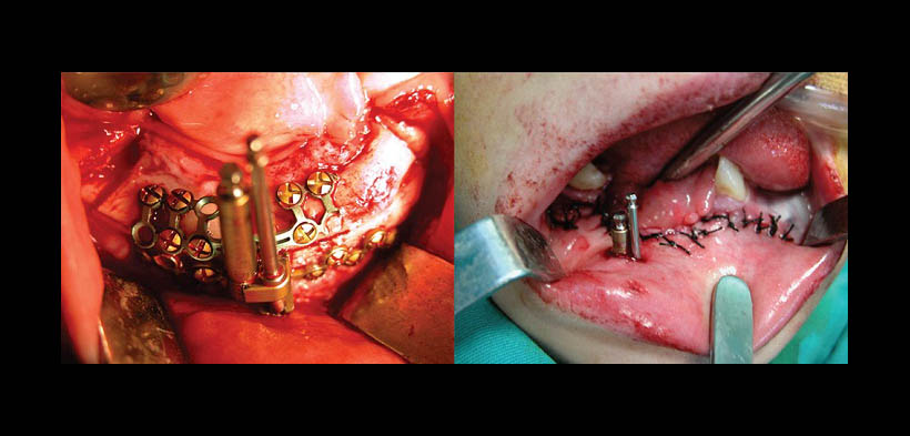 Fig. 4. Distracción osteogénica del hueso alveolar para ganar altura del reborde alveolar y la planificación futura de implantes dentales. Procedimiento realizado a los 4 años del diagnóstico inicial de GCCG.