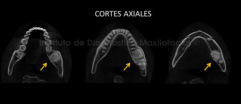 Paciente masculino,  22 años de edad acude a Imágenes Digitales (COREF) de Santo Domingo para evaluación tomográfica de la zona mandibular. Es referido al Instituto de Diagnóstico Maxilofacial (IDM) para su evaluación y diagnóstico.
