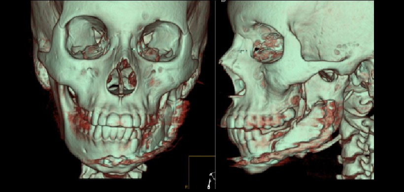 Fig 5. Control mediante tomografía de haz cónico 7 años posterior a la intervención. Se observa una simetría facial adecuada, una cicatriz casi imperceptible y la remodelación total del injerto.