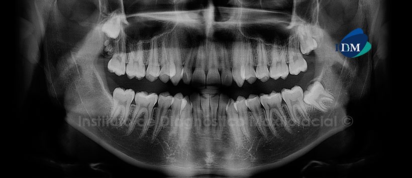 Paciente masculino de 15 años de edad que es referido para la evaluación de los terceros molares. La radiografía panorámica nos muestra la presencia de una imagen de radiodensidad dentaria localizada en la tuberosidad del maxilar superior del lado derecho que ocasiona la retención de la pieza 18. Signos radiográficos compatibles con Odontoma Compuesto. Por otro lado, se aprecian: la pieza 38 mesioangulada e impactada; la dilaceración radicular de la pieza 37 y la ausencia de la pieza 48 (Fig. 1).