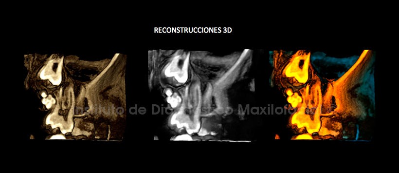 El software Romexis nos brinda diferentes opciones de reconstrucción 3D, como por ejemplo las opciones radiográfico matizado, módulo endo del MID y radiológico; que son de mucha ayuda para la evaluación de estas entidades (Fig. 4).