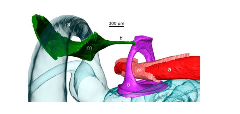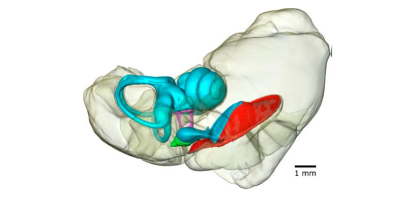 Mediante la combinación de ambos conjuntos de datos, se obtiene unos modelos de alta resolución morfológica completa de todos los componentes funcionales del oído medio en los jerbos. (Figura 3).