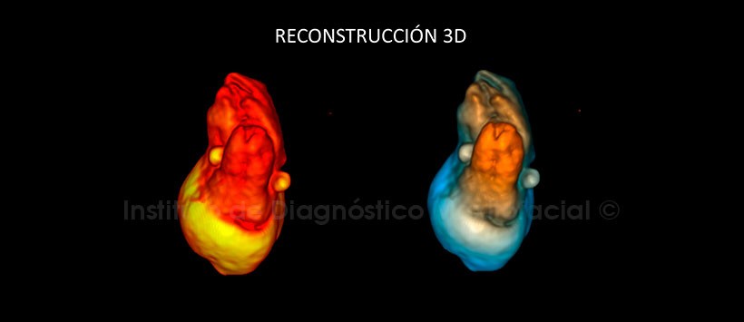 Posteriormente en las reconstrucciones 3D se muestra de manera ilustrativa la forma, ubicación y repercusión de estas 2 estructuras con las estructuras dentarias y óseas adyacentes. (Figura 5, Figura 6 y Figura 7)