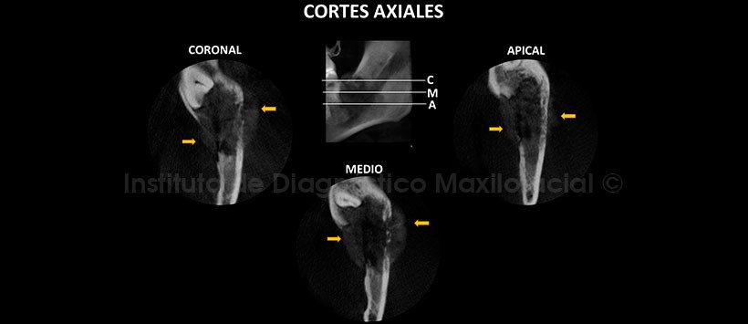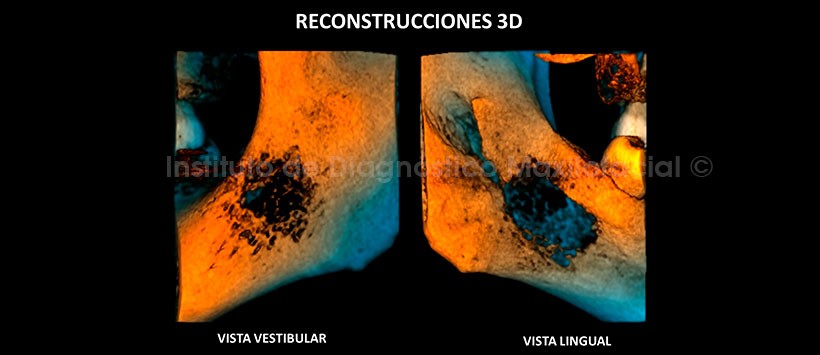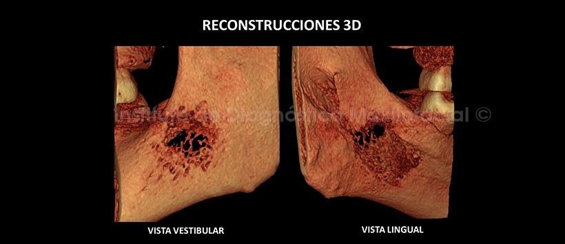 en ambas corticales bucal y lingual, así como la invasión del tejido blando.