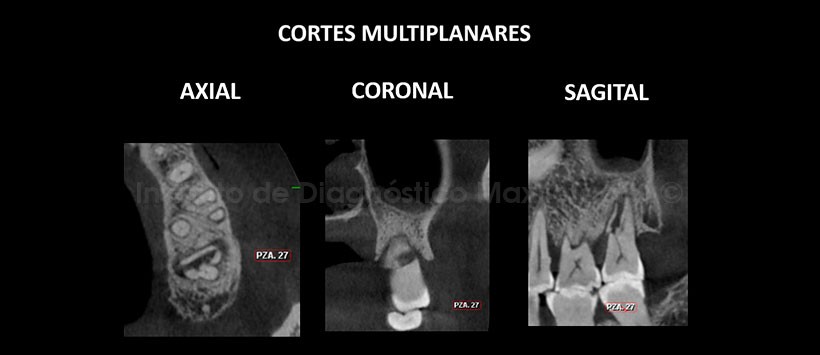 La evaluación por tomografía de haz cónico va orientada al reconocimiento de la afectación del tejido de soporte, la presencia de trazos o líneas hipodensas, la dirección de la fractura, las superficies comprometidas y las estructuras adyacentes. De esta manera se puede establecer con mayor seguridad la determinación de los tratamientos y sus pronósticos.