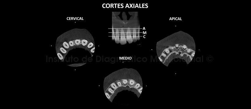 Paciente femenino, 51 años de edad, es referido al Instituto de Diagnóstico Maxilofacial (IDM) para evaluación tomográfica de las piezas anterosuperiores por traumatismo.
