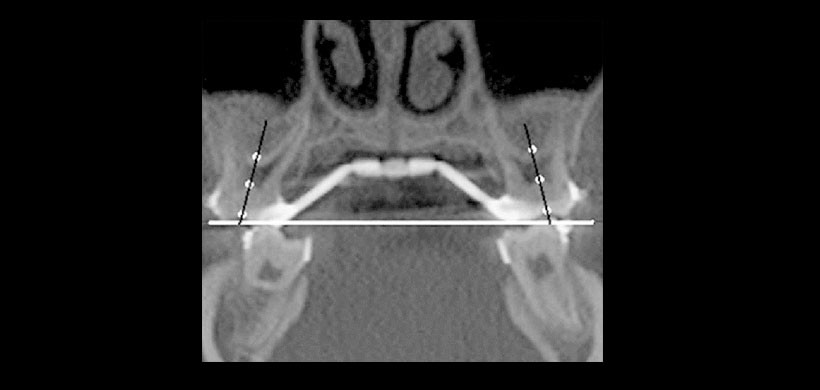 Figura 4: Tomografía cone beam. Postoperatorio, muestra la desmordida posterior a nivel de las primeras molares superiores.