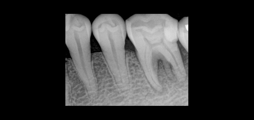 El presente caso relata un paciente de sexo femenino de  de 42 años con odontalgia severa. Sin antecedentes médicos significativos. Un examen intraoral reveló un deterioro distal en la primera molar mandibular izquierda, con sensibilidad a la percusión y la palpación de la zona perirradicular, se encontró una bolsa periodontal profunda en la zona vestibular.