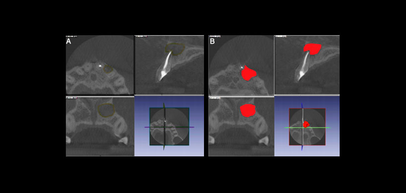 El propósito de este estudio fue desarrollar y evaluar la validez predictiva de un análisis volumétrico de los quistes periapicales basado en CBCT solo o combinado con criterios radiológicos designados. ( Figura 1)