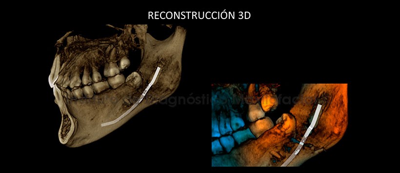 En la reconstrucción 3D se observa que dicha fractura no ha ocasionado ningún tipo de desplazamiento severo de ambos segmentos óseos ni dentarios. (Figura 5 y Figura 6)