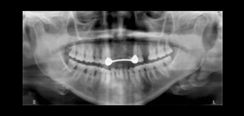 Figura 1. Radiografía panorámica, es el examen de imagen de mayor uso y en el cual se realiza la primera evidencia de la mineralización se los procesos estilohioideos.