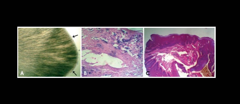 Se realizó un diagnóstico provisional de amelogénesis imperfecta según los hallazgos clínicos y radiográficos. El examen histopatológico de un canino caducifolio extraído mediante microscopía óptica confirmó la ausencia de esmalte y la ausencia de festoneado de la unión dentinoesmalte. (Fig. 3A). Por lo tanto, en base a la clasificación de Witkop, 10 el diagnóstico final fue el subtipo de agenesia del esmalte (tipo 1G) de amelogénesis imperfecta de tipo hipoplásico, que es un trastorno autosómico recesivo. El análisis histopatológico de las muestras obtenidas durante el tratamiento también confirmó la presencia de tejido pulpar calcificado (Figura 3B) y haces densos de colágeno con abundante vascularización en el tejido gingival (Figura 3C).