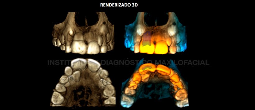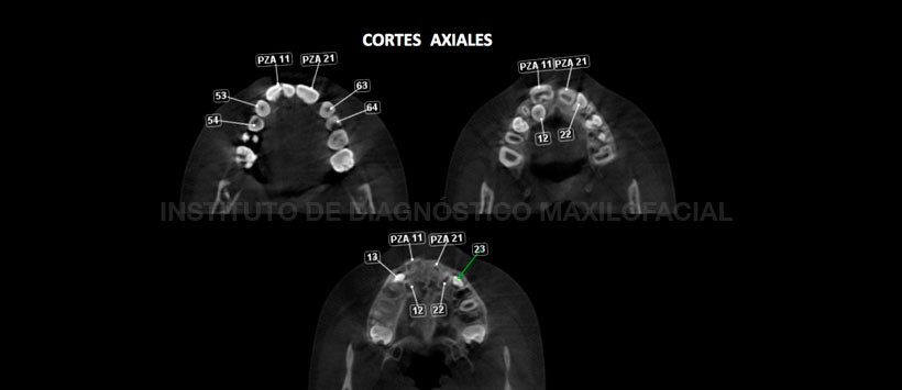 Paciente masculino de 7 años de edad, es referido al Instituto de Diagnóstico Maxilofacial – IDM para examen tomográfico por presentar alteración morfológica en la pieza 1.1 y retraso en la erupción de las piezas 1.2 y 2.2.