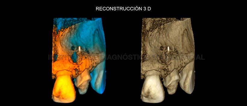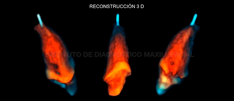 En las reconstrucciones 3D se evidencia de manera ilustrativa la orientación de la sobreobturacion de la pieza 22 así como la extension y repercusión del proceso osteolitico apical.