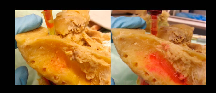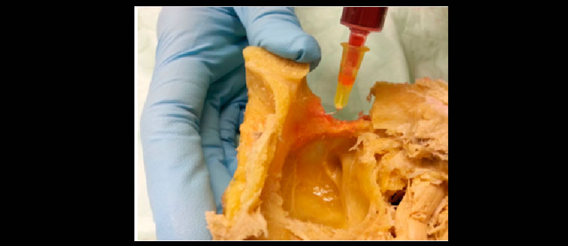 Figura 3: Representación de la salida palatina del canal óseo recién descubierto mediante rastreo por inyección de color