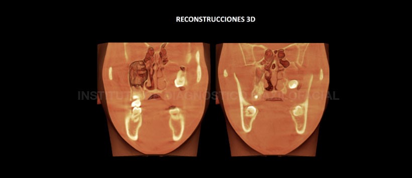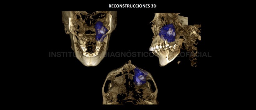 En las reconstrucciones 3D se observan con detalle las dimensiones de la lesión y su relación con estructuras dentarias y óseas adyacentes (Figura 8, 9, 10, 11 y 12).
