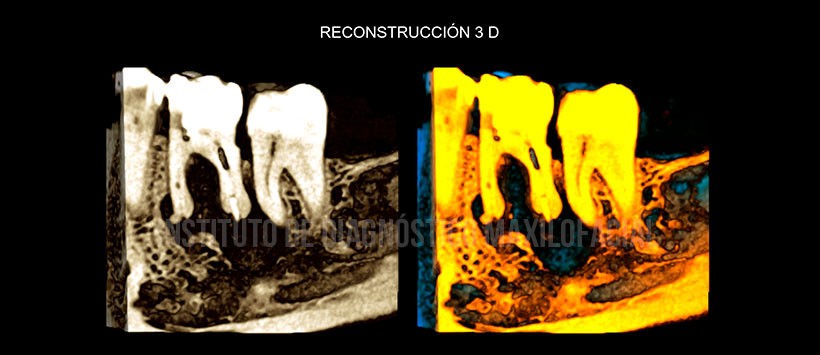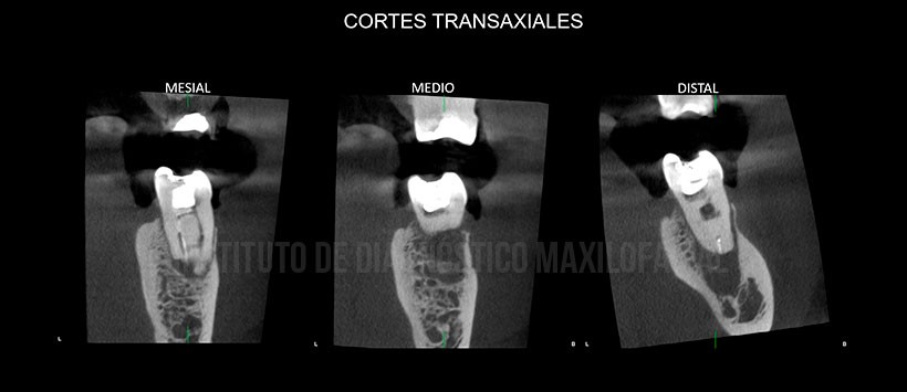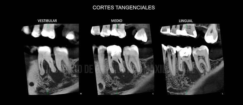 En este caso la tomografía volumétrica de haz cónico nos brindó información no solo sobre la extensión y compromiso de esta lesión sino también las características morfológicas y estado de los conductos radiculares de ambas raíces.