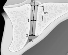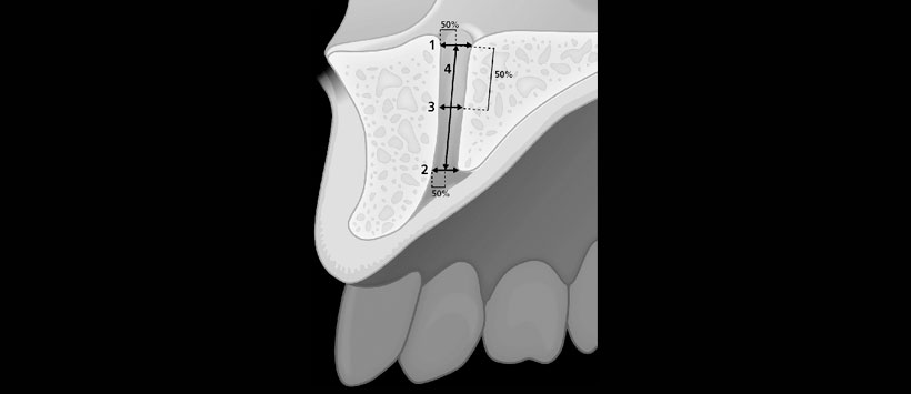 • Figura 1: Vista esquemática de las diferentes medidas realizadas en los planos sagitales de las imágenes CBCT (nº 1 a nº 4).