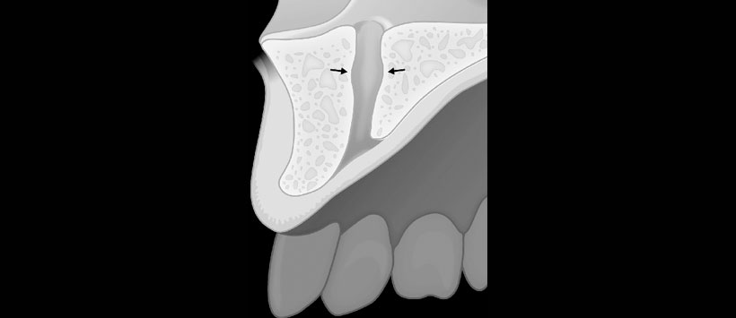 El canal nasopalatino (CNP) es una estructura anatómica importante del maxilar anterior, ubicado en la línea media y posterior a los incisivos maxilares (IM). El foramen incisivo es la abertura palatina del CN y se encuentra debajo de la papila incisiva de la mucosa. El CNP contiene el nervio nasopalatino (incisivo), las ramas terminales de la arteria nasopalatina y las venas del paladar anterior formando un haz neurovascular rodeado de tejido conectivo, grasa y glándulas seromucosas.