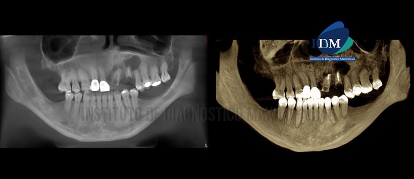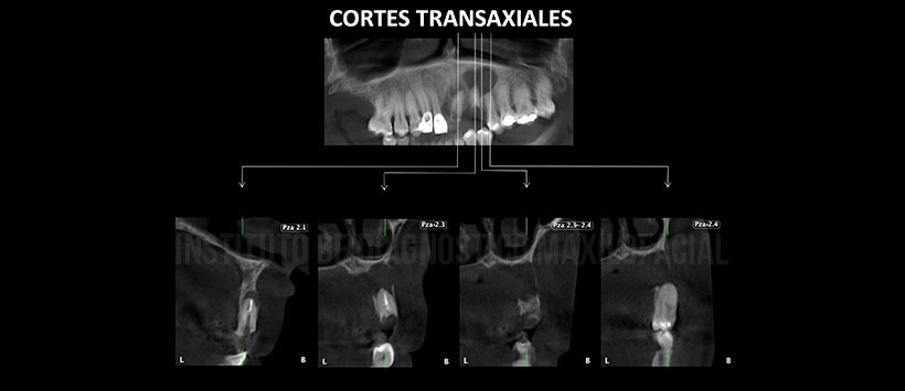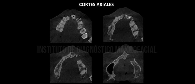 Paciente femenino de 38 años de edad, es referido al Instituto de Diagnóstico Maxilofacial (IDM) para evaluación tomográfica por presencia de aumento de volumen en la zona del fondo de surco vestibular de piezas 22 a 24.