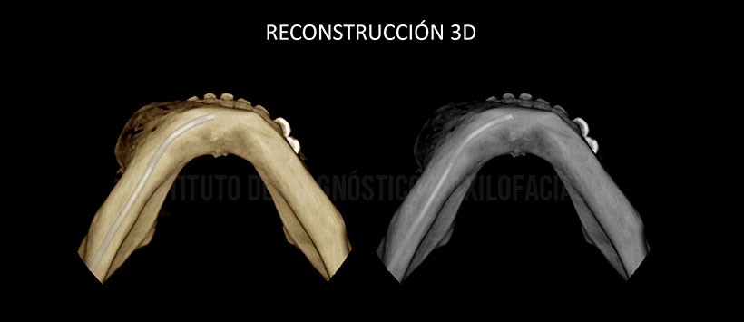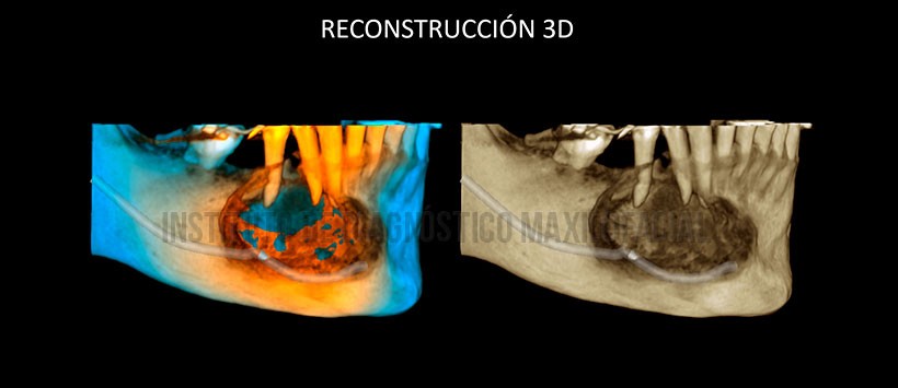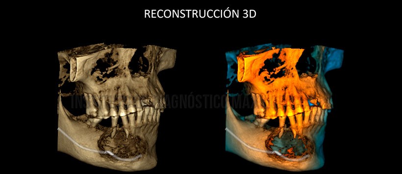 En las reconstrucciones 3D, se evidencia de manera ilustrativa la lesión previamente descrita, así como el estado en que se encuentra y el efeto causante en las estructuras óseas y dentarias adyacentes. (Figura 5, Figura 6 y figura 7)