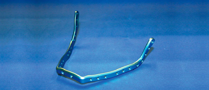 En general, se requieren colgajos de múltiples segmentos y se unen entre sí al hueso mandibular residual con placas de fijación. Sin embargo, antes de ser adaptadas, estas placas aún deben doblarse a mano, ya sea intraoperatoriamente o preoperatoriamente, utilizando un modelo específico del paciente. Dependiendo de la complejidad del caso y las habilidades y experiencia del cirujano, este procedimiento puede consumir una cantidad considerable de tiempo. Además, las placas estándar ofrecidas por los fabricantes no siempre proporcionan los tamaños y números de agujeros requeridos. Esto se aplica en particular a reconstrucciones extensas que involucran toda la mandíbula desde la rama mandibular ascendente derecha hacia la izquierda. Como resultado, las placas a menudo deben doblarse de una manera específica y a veces inusual hasta que se obtenga una solución aceptable.