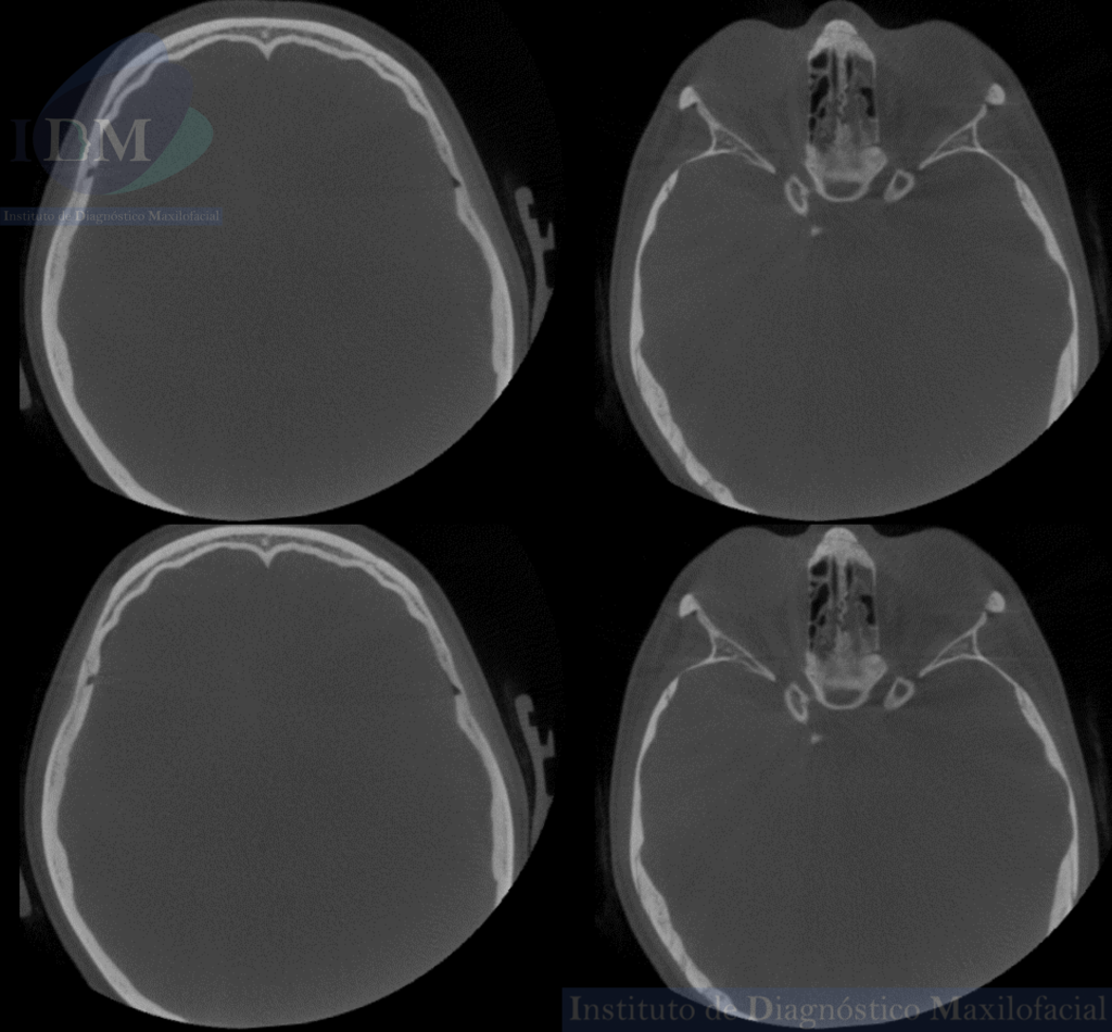 Así mismo en la tomografía volumétrica de haz cónico se evidencia un leve engrosamiento de la mucosa antral de senos paranasales. Siendo lo mas relevante la ausencia de seno esfenoidal en base de cráneo.