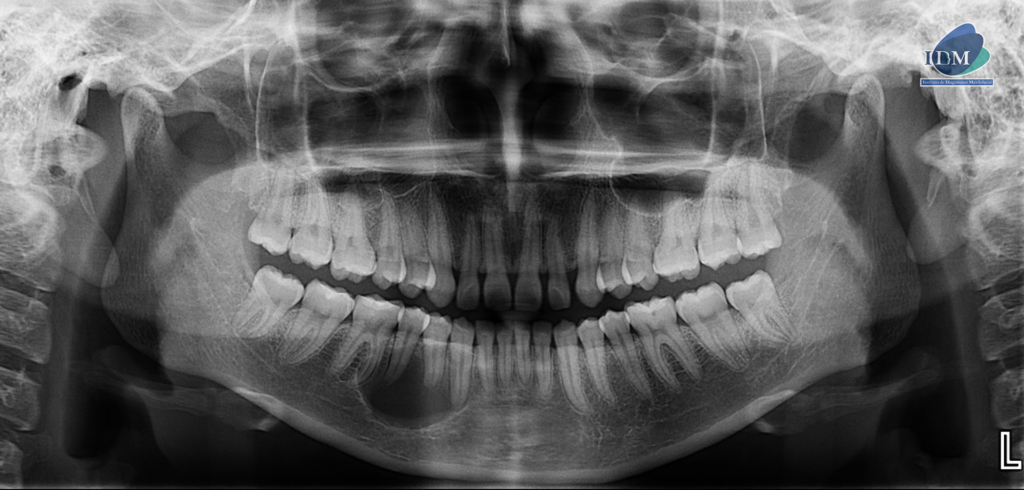 Paciente femenino de 24 años de edad, es referido al Instituto de Diagnóstico Maxilofacial – IDM para evaluación por presentar aumento de volumen en zona posterior derecha del maxilar inferior.