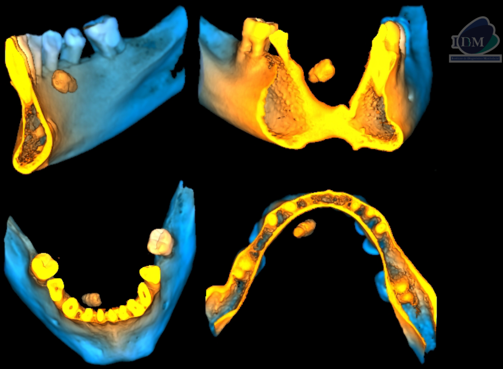 Paciente femenino de 63 años de edad, es referido al Instituto de Diagnóstico Maxilofacial – IDM para evaluación general mediante estudio tomográfico.