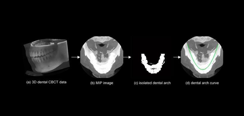 La presente investigación propone un método automático de reformación panorámica basándose en los datos obtenidos de la tomografía computarizada de haz de cónico (CBCT) para observar directamente todas las estructuras dentarias.